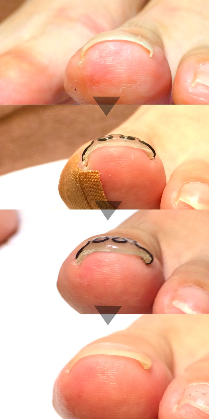 博多から来られた方で、5〜6年間巻き爪の痛みで悩まれていた30代女性の方の卒業までの時系列です。仕事柄細い靴を履かなくてはならないので、とても辛かっただろうと容易に想像できます。とにかく仕事中に痛みを気にしなくていいと喜ばれていて私も嬉しく思います。
